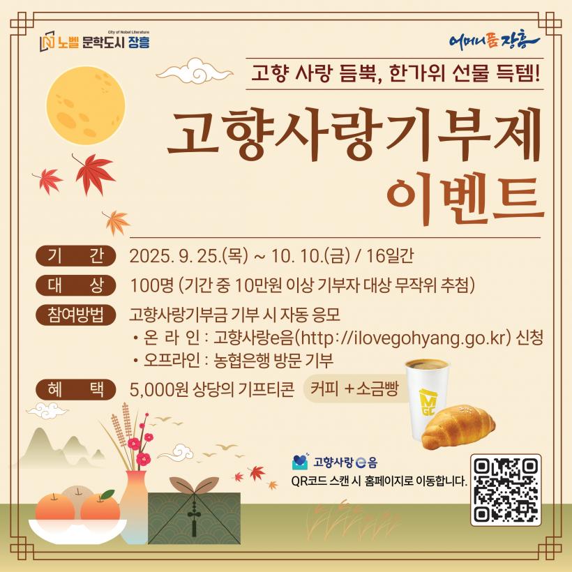 Çà»ç´Â 9¿ù 25ÀÏ(¸ñ)ºÎÅÍ 10¿ù 10ÀÏ(±Ý)±îÁö 16Àϰ£ ÁøÇàµÇ¸ç ±â°£ Áß ÀåÈﱺ¿¡ °íÇâ»ç¶û±âºÎ ÈÄ ´ä·ÊǰÀ» ÁÖ¹®ÇÑ »ç¶÷À» ´ë»óÀ¸·Î 100¸í ¹«ÀÛÀ§·Î Ãß÷ÇÏ¿© 5õ¿ø »ó´çÀÇ ±âÇÁƼÄÜÀ» ÁõÁ¤ÇÑ´Ù.