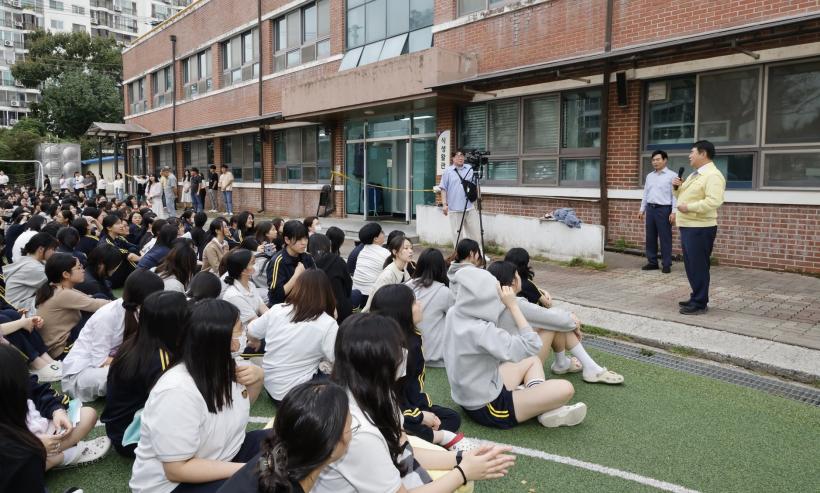 Çлý ¾ÈÀü µîÀ» Á¡°ËÇϱâ À§ÇØ ÇöÀåÀ» ãÀº ÀÌÁ¤¼± ±³À°°¨Àº ¡°Çб³ Æø¹ß¹° ¼³Ä¡ Çù¹ÚÀº ÇлýµéÀÇ »ý¸íÀ» À§ÇùÇÏ´Â ¸Å¿ì Áß´ëÇÑ »ç¾È¡±À̶ó¸ç ¡°±ä±Þ »óȲÀÌ ¹ß»ýÇÒ °æ¿ì Çлý ¾ÈÀüÀ» ÃÖ¿ì¼±À¸·Î ½Å¼ÓÇϰí ü°èÀûÀ¸·Î ´ëÀÀÇÒ ¼ö ÀÖµµ·Ï ÃÖ¼±À» ´ÙÇϰڴ١±°í ¸»Çß´Ù.