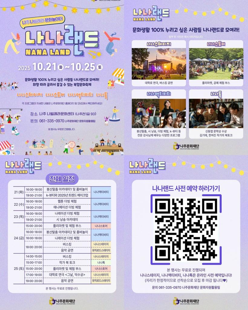 14ÀÏ ³ªÁÖ¹®ÈÀç´Ü(ÀÌ»çÀå À±º´ÅÂ)¿¡ µû¸£¸é »ê¾÷ °ø°£À» ¹®È°ø°£À¸·Î Å»¹Ù²ÞÇÑ ³ªºô·¹¶ó¹®È¼¾ÅÍ¿¡¼ º¹ÇÕ¹®ÈÃàÁ¦¸¦ ¿À´Â 10¿ù 21ÀϺÎÅÍ 25ÀϱîÁö ÁøÇàÇÑ´Ù.