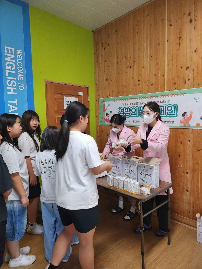 Çà»ç¿¡ Âü¿©ÇÑ ¾î¸°À̵鿡°Ô´Â ¿ì¸®½Ò·Î ¸¸µç °Ç°»§°ú À¯±â³ó µÎÀ¯°¡ Á¦°øµÆ´Ù. ÀÌ´Â ±¹³»»ê ½ÄÀç·áÀÇ ¿ì¼ö¼ºÀ» ¾Ë¸®°í, ±ÕÇü ÀâÈù ¾ÆÄ§½Ä»çÀÇ ÁÁÀº º»º¸±â¸¦ Á¦½ÃÇϱâ À§ÇÑ ÃëÁö´Ù. ¾ÆÀ̵éÀº ¡°¿ì¸® ½Ò»§ÀÌ ¸ÀÀÖ¾î¿ä!¡±, ¡°µÎÀ¯¸¦ ¾ÆÄ§¿¡ ¸¶½Ã´Ï±î ÈûÀÌ ³ª¿ä!¡±¶ó¸ç Áñ°Ì°Ô Âü¿©Çß´Ù.