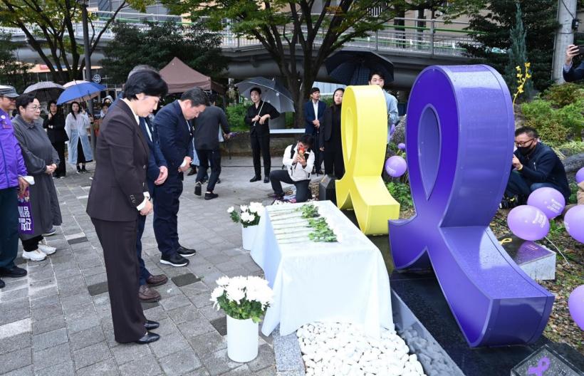ÇÑÆí, ³²±¸´Â Áö³ÇØ ¹é¿î±¤Àå Ǫ¸¥±æ °ø¿ø »êÃ¥·Î Àαٿ¡ ¼¼¿ùÈ£ ¹× ÀÌÅ¿ø Âü»ç Èñ»ýÀÚ¸¦ Ã߸ðÇÏ´Â ³ë¶û ¸®º» Á¶Çü¹°°ú º¸¶ùºû ¸®º» Á¶Çü¹°À» ¼³Ä¡ÇØ Ãß¸ð °ø°£À¸·Î Á¶¼ºÇÑ ¹Ù ÀÖ´Ù.