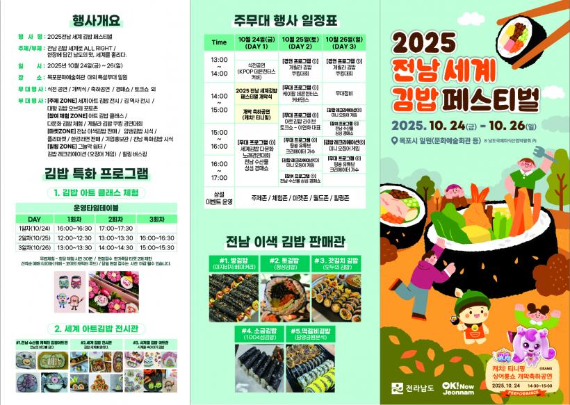 ù³¯ÀÎ 24ÀÏ ÄÉÀÌÆË(K-POP) Ä¿¹ö´í½º °ø¿¬°ú ÇÔ²² È·ÁÇÏ°Ô ¸·ÀÌ ¿À¸£°í, Àü³² ¼ö»ê¹° ¼Òºñ ÃËÁøÀ» À§ÇÑ ´ë±â¾÷°úÀÇ MOU ü°á½ÄÀÌ ÁøÇàµÈ´Ù. ¶ÇÇÑ ¾î¸°ÀÌ °ü¶÷°´À» À§ÇÑ Àαâ ij¸¯ÅÍ ¡®Æ¼´ÏÇÎ ½Ì¾î·Õ ¼î¡¯ Ưº°¹«´ë°¡ ¸¶·ÃµÅ °¡Á·´ÜÀ§ °ü¶÷°´ÀÇ Å« È£ÀÀÀ» À̲ø ¿¹Á¤ÀÌ´Ù.