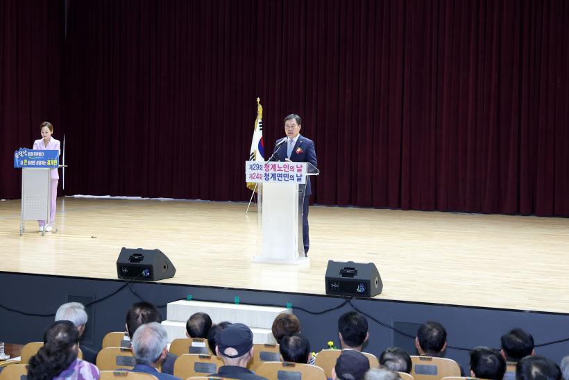 Á¤È«ÁØ Ã»°è¸é ³ëÀÎȸÀåÀº ±â³ä»ç¿¡¼ ¡°¾ÕÀ¸·Î ¿ì¸® ³ë³â ¼¼´ë°¡ Èļտ¡°Ô º»º¸±â°¡ µÇ´Â »îÀ» »ì¾Æ³ª°¡ÀÚ¡±°í ¹àÇûÀ¸¸ç, ±è»óö û°è¸é ¹ø¿µÈ¸ÀåÀº ȯ¿µ»ç¸¦ ÅëÇØ ¡°Ã»°èÀÇ ÅÍÀüÀ» °¡²Ù°í ÁöÄÑ¿À½Å ¾î¸£½ÅµéÀÇ Çå½Å¿¡ Á¸°æÀ» µå¸®¸ç ±× Á¤½ÅÀ» À̾î¹Þ¾î ¹Ì·¡¼¼´ë¿Í ÇÔ²² »õ·Î¿î û°è¸¦ ¸¸µé¾î°¡°Ú´Ù¡±¸ç È´äÇß´Ù.