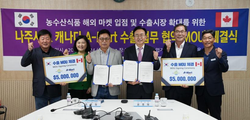 ³ªÁÖ½Ã(½ÃÀå À±º´ÅÂ)´Â Áö³ 24ÀÏ Àü¶ó³²µµ ³ó¾÷±â¼ú¿ø¿¡¼ ij³ª´Ù A-Mart(´ëÇ¥ ÃÖº´È)¿Í 500¸¸ ´Þ·¯ ±Ô¸ðÀÇ ³ó¼ö»ê½Äǰ ¼öÃâ ¾÷¹«Çù¾à(MOU)À» ü°áÇß´Ù°í 27ÀÏ ¹àÇû´Ù.