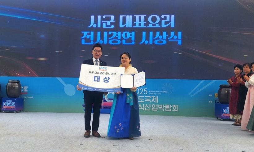 ´ë»óÀ» ¹ÞÀº ±è¹Î¾Æ¾¾´Â ÁøµµÀÇ Æ¯»ê¹°À» âÀÇÀûÀ¸·Î Ȱ¿ëÇØ ÀüÅë ¿ä¸®ÀÎ ¡®Çػ깰 Àå°ú¡¯¸¦ ÃâǰÇßÀ¸¸ç, ³²µµÀÇ ±íÀº ¸ÀÀ» Ç¥ÇöÇÏ°í °¨°¢ÀûÀÎ Á¶¸®¿Í Àü½Ã¸¦ ÅëÇØ ½É»çÀ§¿ø°ú °ü¶÷°´ÀÇ Âù»ç¸¦ ¹Þ¾Ò´Ù.