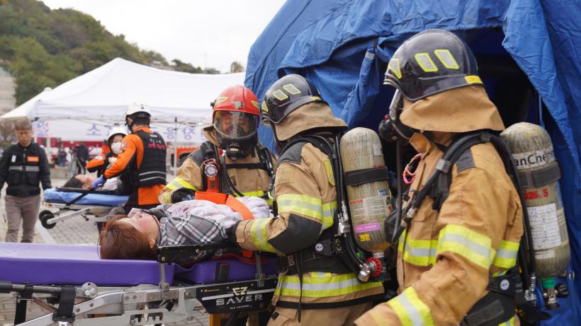 ¼Ò¹æÃ»ÀÌ ÁÖ°üÇϰí Àü³²µµ¼Ò¹æº»ºÎ°¡ ÁÖÃÖÇÑ À̹ø ÈÆ·ÃÀº ÁöÁø µî ´ëÇü º¹ÇÕÀç³ ¹ß»ý ½Ã À¯°ü±â°ü °£ ±ä±Þ±¸Á¶ ´ëÀÀ ¿ª·®À» °ÈÇϰí, ÇöÀå Áß½ÉÀÇ ÅëÇÕÁöÈÖü°è È®¸³À» À§ÇÑ ±¹°¡ Â÷¿øÀÇ Á¾ÇÕÈÆ·ÃÀÌ´Ù.