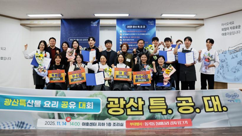 ±¤ÁÖ ±¤»ê±¸(±¸Ã»Àå ¹Úº´±Ô)´Â Áö³ 14ÀÏ ¾ßÈ£¼¾ÅÍ(¿ù°îµ¿ û¼Ò³â¹®ÈÀÇÁý) Á¶¸®½Ç¿¡¼ Áö¿ª Ư»ê¹°ÀÎ µ¿°îµ¿ µ¹¹Ì³ª¸®¸¦ ÁÖÁ¦·Î ÇÑ ¿ä¸® °øÀ¯ °æ¿¬´ëȸ ¡®2025 ±¤»ê Ư.°ø.´ë(Ư»ê¹° ¿ä¸® °øÀ¯ ´ëȸ)¡¯ º»´ëȸ¸¦ ¼ºÈ²¸®¿¡ ¿¾ú´Ù°í ¹àÇû´Ù.