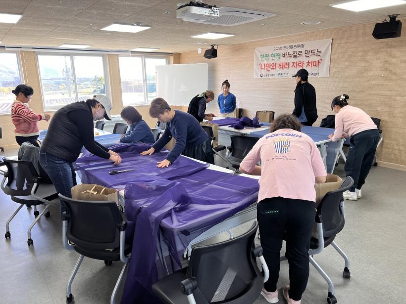 Âü¿©ÀÚµéÀº ¸ÅÁÖ ÃµÀ» ÀÚ¸£°í ¼Õ¹Ù´ÀÁú·Î ¿Ê°¨À» ÀÕ´Â °úÁ¤À» ÅëÇØ, ´Ü¼øÇÑ ¹Ù´ÀÁúÀ» ³Ñ¾î ÀüÅëÀÇ ¹Ì¿Í Á¤¼ºÀ» ¹è¿ì°í ÀÖ´Ù. ¶ÇÇÑ ¼¼»ó¿¡ Çϳª»ÓÀÎ ¡®³ª¸¸ÀÇ ÀÚ¶ôÄ¡¸¶¡¯¸¦ ¿Ï¼ºÇذ¡´Â °úÁ¤ ¼Ó¿¡¼ Å« ¸¸Á·°¨°ú ¼ºÃë°¨À» ´À³¢°í ÀÖ´Ù.