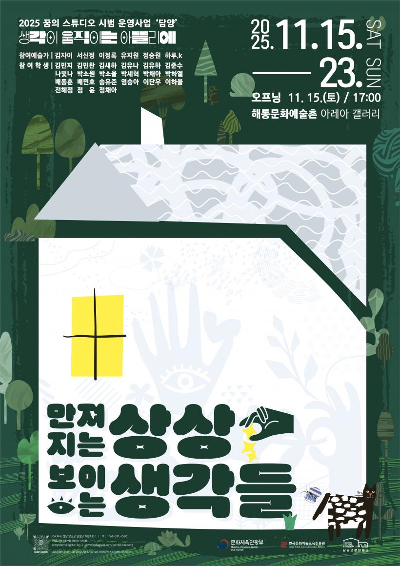 ²ÞÀÇ ½ºÆ©µð¿À´Â Àü³²±Ç¿¡¼ À¯ÀÏÇÏ°Ô ´ã¾ç±º¹®ÈÀç´ÜÀÌ °ÅÁ¡±â°üÀ¸·Î ¼±Á¤µÇ¾î ¹®ÈüÀ°°ü±¤ºÎ¿Í Çѱ¹¹®È¿¹¼ú±³À°ÁøÈï¿øÀÇ Áö¿øÀ» ¹Þ¾Æ Áö³ 8¿ùºÎÅÍ 11¿ù±îÁö 4°³¿ù°£ ÁøÇàÇÑ À¶ÇÕÇü ¿¹¼ú±³À° ÇÁ·Î±×·¥À¸·Î, ´ã¾ç°ú ±¤ÁÖÁö¿ªÀ» Áß½ÉÀ¸·Î Ȱµ¿ÇÏ´Â ½Ã°¢¿¹¼ú ÀÛ°¡ 6Àΰú ±âȹÀÚ¡¤¿¡µàÄÉÀÌÅÍ 2ÀÎÀÌ Âü¿©ÇÏ¿© ±¹°¡¹«Çü¹®ÈÀç Á¦53È£ ä»óÀå ¼½ÅÁ¤ ¸íÀÎÀÇ ÀüÅë °ø¿¹ºÎÅÍ Çö´ë¹Ì¼ú±îÁö ´Ù¾çÇÑ À帣¸¦ ¾Æ¿ì¸£´Â ±³À°ÀÌ ÀÌ·ç¾îÁ³´Ù.