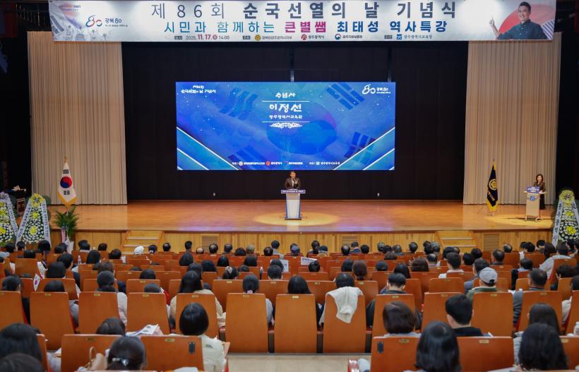 [°ø°£´º½º = ±è¼ö±Ù±âÀÚ] ÀÌÁ¤¼± ±¤Áֽñ³À°°¨Àº Áö³ 17ÀÏ ±¤ÁÖ±¤¿ª½Ã±³À°Ã»±³À°¿¬¼ö¿ø ´ë°´ç¿¡¼ ¿¸° ¡®±¤º¹ 80ÁÖ³â, Á¦86ȸ ¼ø±¹¼±¿ÀÇ ³¯ ±â³ä½Ä¡¯¿¡ Âü¼®ÇØ ³ª¶óÀÇ µ¶¸³°ú ÀÚÀ¯¸¦ À§ÇØ Çå½ÅÇÑ ¼ø±¹¼±¿°ú ¾Ö±¹Áö»çÀÇ ¼þ°íÇÑ Á¤½ÅÀ» ±â·È´Ù.
