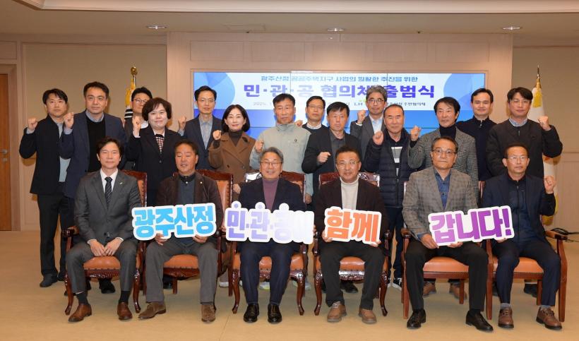 ¹Î¡¤°ü¡¤°ø ÇùÀÇü´Â ±¤ÁÖ½Ã(1¸í), Çѱ¹ÅäÁöÁÖÅðø»ç(LH¡¤4¸í), ÁֹδëÇ¥(5¸í)°¡ ÇÔ²² °ø°øÁÖÅÃÁö±¸ Á¶¼º¿¡ ´ëÇÑ ÀǰßÀ» ¸ðÀ¸°í Çù·Âü°è¸¦ °ÈÇϱâ À§ÇØ Ãâ¹üÇß´Ù. ÇùÀÇü´Â ¾ÕÀ¸·Î »ç¾÷¿¡ ´ëÇÑ Àǰ߰ú Çö¾ÈÀ» Á¤±âÀûÀ¸·Î °øÀ¯¡¤¼ÒÅëÇÒ ¿¹Á¤ÀÌ´Ù.