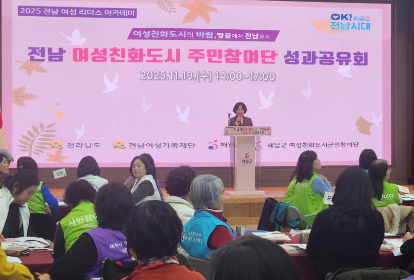 [°ø°£´º½º = ±è¼ö±Ù±âÀÚ] Àü¶ó³²µµ´Â 2025³â Àü³²¿©¼ºÄ£Èµµ½Ã ÁÖ¹ÎÂü¿©´Ü ¼º°ú°øÀ¯È¸¸¦ Áö³ 19ÀÏ ÇØ³²¹®È¿¹¼úȸ°ü¿¡¼ °³ÃÖ, 9°³ ¿©¼ºÄ£Èµµ½Ã ½Ã±º¹Î ÁÖ¹ÎÂü¿©´Ü°ú ¡®¸ðµÎ°¡ ÆòµîÇÏ°í ¾ÈÀüÇÑ, »ì±â ÁÁÀº Àü³²¡¯ ¸¸µé±â ¹æ¾ÈÀ» ³íÀÇÇß´Ù.