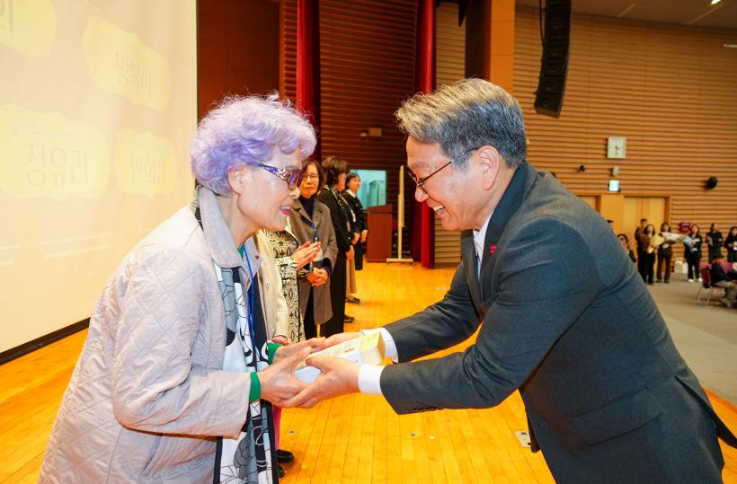Çѱ¹°Ç°°¡Á¤ÁøÈï¿øÀÌ ÁÖ°üÇÑ ¿ÃÇØ ¾ÆÀ̵¹º½ ¼ö±â °ø¸ðÀü Á¾»çÀÚ ºÎ¹®¿¡¼ ´ë»óÀ» ¹ÞÀº À¯ÁøÈñ ¾¾(±¤ÁÖ µ¿±¸ ¾ÆÀ̵¹º½Áö¿ø¼¾ÅÍ Á¾»çÀÚ)°¡ ¼ö»óÀÛÀ» Á÷Á¢ ¹ßÇ¥ÇØ Å« °ø°¨À» À̲ø¾ú´Ù.