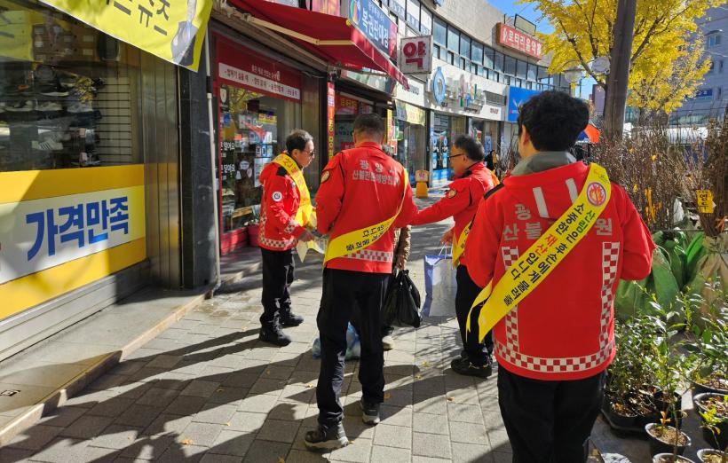 À̳¯ Ä·ÆäÀο¡´Â ½Ã »ê¸²¼Òµæ°ú Á÷¿ø 4¸í, »êºÒÀü¹®¿¹¹æÁøÈ´ë 23¸í, Çѱ¹Àü·Â°ø»ç Á÷¿ø 7¸íÀÌ Âü¿©ÇØ ½ÃÀåÀ» ãÀº ½Ã¹Î°ú »óÀÎÀ» ´ë»óÀ¸·Î »êºÒ¿¹¹æ È«º¸È°µ¿À» ÆîÃÆ´Ù.