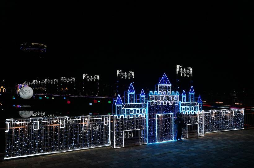 ÃàÁ¦ÀÇ Á᫐ °ø°£ÀÎ ¿©¿ï´Ù¸®´Â È£¼ö À§¸¦ °¡·ÎÁö¸£´Â ´Ù¸® Àüü¿¡ Á¶¸íÀÌ ¼³Ä¡µÅ À½Ç¥Ã³·³ ¹Ý¦ÀÌ´Â ºûÀÇ ¸®µëÀ» ¸¸µé¾î³½´Ù.