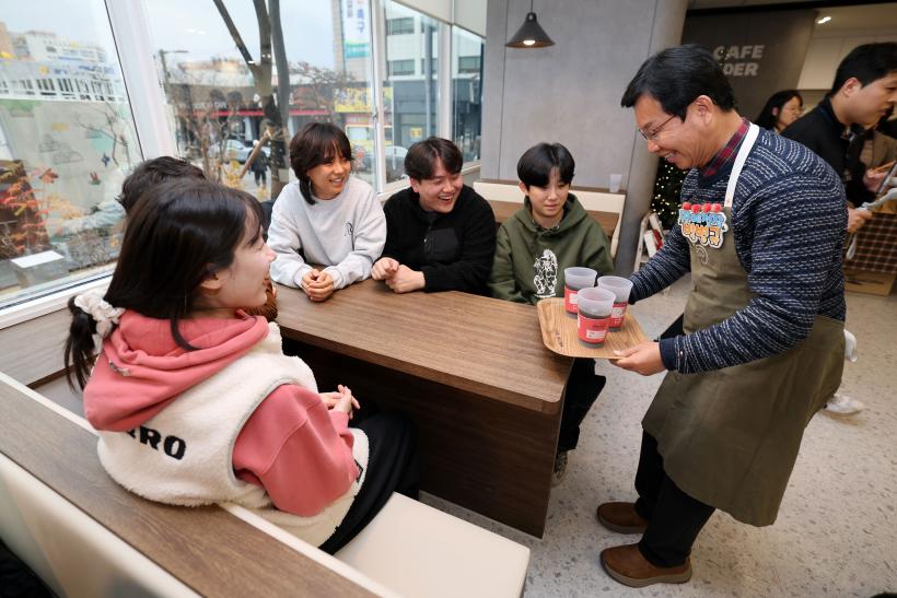 [°ø°£´º½º = ±è´ë¿µ±âÀÚ] ¹Úº´±Ô ±¤»ê±¸Ã»Àå°ú Á¤¼±±³ ´ë¸í¿Ü½Ä»ê¾÷ ´ëÇ¥°¡ Áö³ 27ÀÏ ±¤»ê±¸Ã» 1Ãþ ¸ðµÎÀÇ ½°ÅÍ Á¶¼ºÀ» ±â³äÇØ û°¢Àå¾ÖÀÎÀÇ ÀÚ¸³À» µ½´Â ÀÏÅÍÀÎ ±¸Ã» ³» ¡®Ä«ÆäȦ´õ¡¯¿¡¼ ÀÏÀÏ ¸í¿¹Á¡Àå »çȸ°øÇåȰµ¿À» ÁøÇàÇß´Ù.