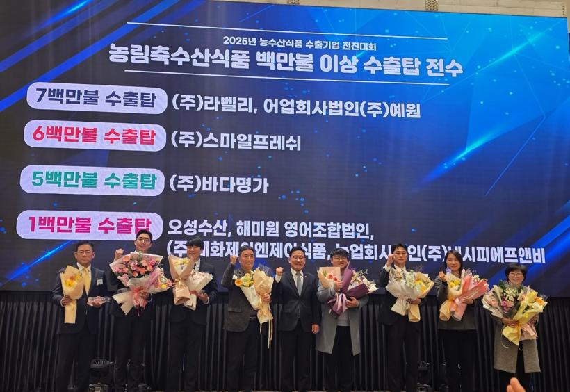 À̹ø ¼ö»óÀº Áö¿ª ³ó¼ö»ê½ÄǰÀÇ Ç°Áú°ú °æÀï·ÂÀÌ ÇØ¿Ü ½ÃÀå¿¡¼ ´Ù½Ã Çѹø ÀÎÁ¤¹ÞÀº ÀÇ¹Ì ÀÖ´Â ¼º°ú·Î Æò°¡µÈ´Ù. ½Ã»ó½ÄÀº Áö³ 11¿ù 28ÀÏ ¿ÀÈÄ ¹«¾È±º ³²¾Ç ½ºÄ«ÀÌ¿þµùÄÁº¥¼Ç¿¡¼ ¿·È´Ù. Çà»ç¿¡¼´Â Àü³² ³ó¸²Ãà¼ö»ê½Äǰ ¼öÃâ È®´ë¿¡ ±â¿©ÇÑ ¿ì¼ö ±â¾÷µéÀÌ ±×°£ÀÇ ¼º°ú¸¦ °øÀ¯Çß´Ù.