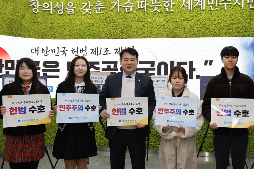 ƯÈ÷ ½Ã±³À°Ã»Àº Çå¹ý°ú ¹ÎÁÖÁÖÀǸ¦ Áö۱â À§ÇÑ ±³À°ÀÇ ¿ªÇÒÀ» µÇ»õ±â°íÀÚ ¡®±¤ÁÖ±³À° ¹ÎÁÖÁÖÀÇ ¼öÈ£ ¼±¾ð¹®¡¯À» ¼±Æ÷Çß´Ù.