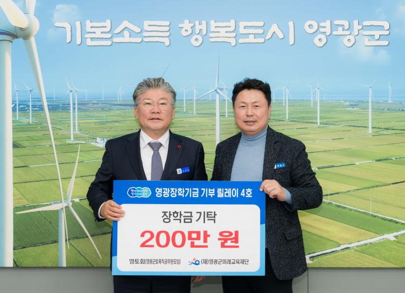 [°ø°£´º½º = ±è¼ö±Ù±âÀÚ] ¿µ±¤±º Åä¸ñÁ÷ °ø¹«¿ø ¸ðÀÓÀÎ ¿µÅäȸ(ȸÀå ÀÌ¿µ±â)´Â Áö³ 12¿ù 8ÀÏ (Àç)¿µ±¤±º¹Ì·¡±³À°Àç´Ü¿¡ Áö¿ª ÀÎÀç À°¼º°ú ±³À° ¹ßÀüÀ» À§ÇÑ ÀåÇбâ±Ý 200¸¸ ¿øÀ» ±âŹÇß´Ù.