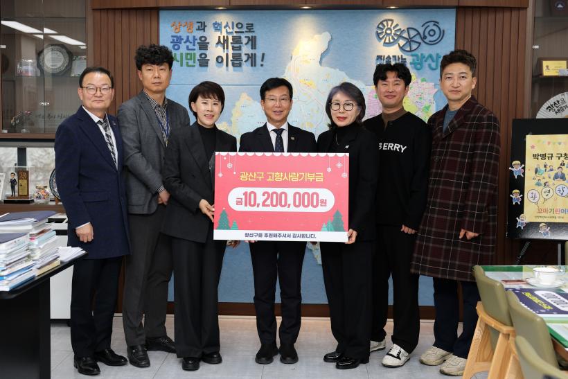 Áö³ 11¿ù 27ÀÏ ±¸Ã» 1Ãþ Ä«ÆäȦ´õ¿¡¼ ÀÏÀÏ ¸í¿¹Á¡ÀåÀ» Çß´ø Á¤¼±±³ ´ë¸íǪµå½Ã½ºÅÛ¢ß ´ëÇ¥°¡ ¿¬°èÇÑ 49¸íÀÇ ±â¾÷ÀÎÀÌ ±¤»ê±¸¿¡ °íÇâ»ç¶û±âºÎ±Ý ÃÑ 1,020¸¸ ¿øÀ» Àü´ÞÇß´Ù.