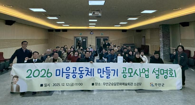ÇÑÆí, 2026³â ¸¶À»°øµ¿Ã¼ ¸¸µé±â °ø¸ð»ç¾÷Àº 2026³â 1¿ù 7ÀϱîÁö Á¢¼öÇϸç. ±âŸ ÀÚ¼¼ÇÑ »çÇ×Àº ¹«¾È±ºÃ» Áö¿ª°³¹ß°ú Áö¿ª°øµ¿Ã¼ÆÀ(¢Ï 061-450-5763)À¸·Î ¹®ÀÇÇÏ¸é µÈ´Ù.