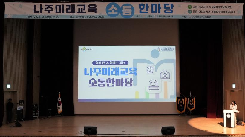 [°ø°£´º½º = ¹Ú¼º¿Á±âÀÚ] Àü³² ³ªÁÖ½Ã(½ÃÀå À±º´ÅÂ)¿Í ³ªÁÖ±³À°ÁøÈïÀç´ÜÀÌ ³ªÁ̷ֹ¡±³À°ÀÇ ¹æÇ⼺°ú ´Ù¾çÇÑ ±³À°Áö¿ø »ç¾÷ÀÇ ¼º°ú¸¦ ½Ã¹Î°ú ÇÔ²² ³ª´©´Â ¡®2025 ³ªÁ̷ֹ¡±³À° ¼ÒÅëÇѸ¶´ç¡¯À» ¼ºÈ²¸®¿¡ °³ÃÖÇß´Ù.
