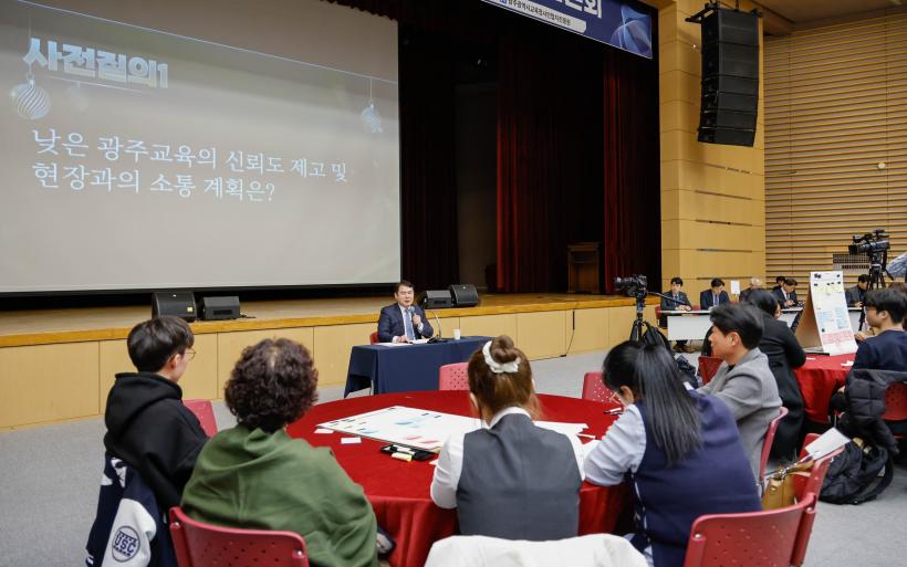 ÀÌÁ¤¼± ±³À°°¨Àº ¡°±³À°ÁÖü¿Í ¾ó±¼À» ¸Â´ë°í ±¤ÁÖ±³À° ¹ßÀü¿¡ ´ëÇØ ¼·Î À̾߱⸦ ³ª´©´Â ¼ÒÁßÇÑ ½Ã°£À̾ú´Ù¡±¸ç ¡°ÇöÀå ¸ñ¼Ò¸®¿¡ ±Í ±â¿ï¿© ´õ ³ªÀº ±¤ÁÖ±³À° Á¤Ã¥ÀÌ ¼ö¸³µÇµµ·Ï ÃÖ¼±À» ´ÙÇϰڴÙ"°í ¸»Çß´Ù.