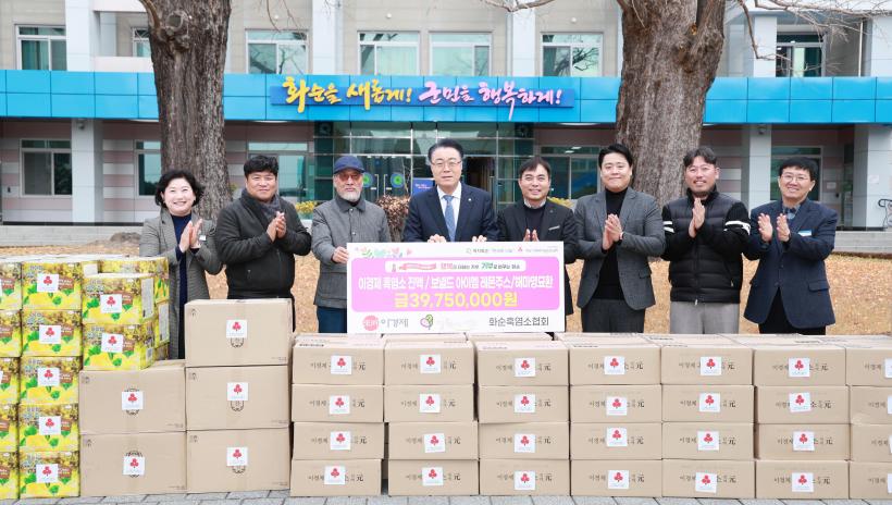 Èæ¿°¼Ò »ê¾÷ °ü·Ã À̵é 3°³ ±â¾÷¡¤´Üü´Â ¿ÃÇØµµ ¸¶Âù°¡Áö·Î °Ü¿ïö °Ç°°ü¸®°¡ ¾î·Á¿î Ãë¾à °èÃþ¿¡°Ô Èæ¿°¼Ò Áø¾× 400¹Ú½º¿Í ÇØ¸¶¿µ¹¦È¯ 50¹Ú½º, ·¹¸óÁÖ½º 100¹Ú½º¸¦ Àü´ÞÇß´Ù.