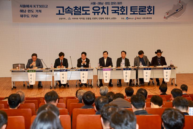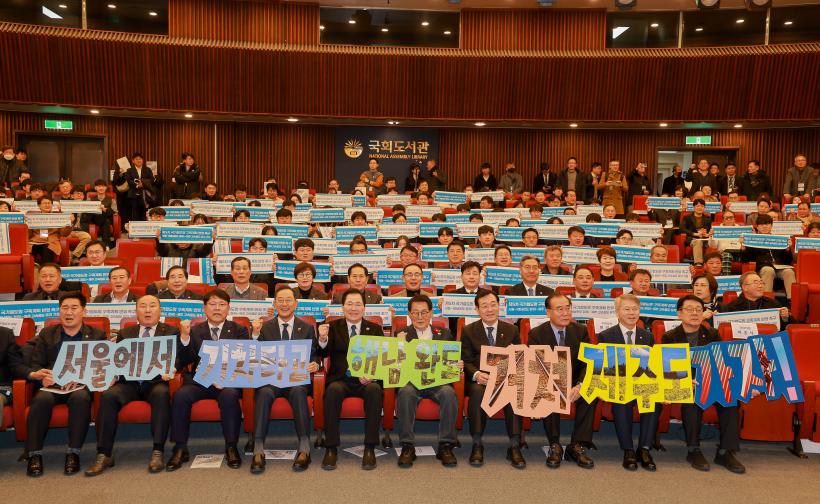 '¼¿ï~ÇØ³²¡¤¿Ïµµ °æÀ¯ Á¦ÁÖ °í¼Óöµµ À¯Ä¡ ±¹È¸ Åä·Ðȸ'´Â Áö¿ª±¸ ±¹È¸ÀÇ¿øÀÎ ¹ÚÁö¿ø ÀÇ¿øÀ» ÁÖÃàÀ¸·Î ¹Îȫö, ¹Îº´´ö, ¹ÎÇü¹è, ÇãÁ¾½Ä, ¼Õ¸í¼ö ±¹È¸ÀÇ¿øÀÌ °øµ¿ ÁÖÃÖÇÏ°í ¿Ïµµ±º°ú ÇØ³²±ºÀÌ °øµ¿À¸·Î ÁÖ°üÇß´Ù.