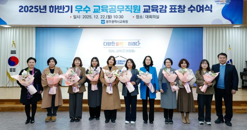 [°ø°£´º½º = ±è¼ö±Ù±âÀÚ] ±¤Áֽñ³À°Ã»(±³À°°¨ ÀÌÁ¤¼±)Àº 22ÀÏ º»Ã» ´ëȸÀǽǿ¡¼ ¡®2025³âµµ ÇϹݱ⠿ì¼ö ±³À°°ø¹«Á÷¿ø¡¯ 15¸í¿¡ ´ëÇØ ±³À°°¨ ǥâÀ» ¼ö¿©Çß´Ù.