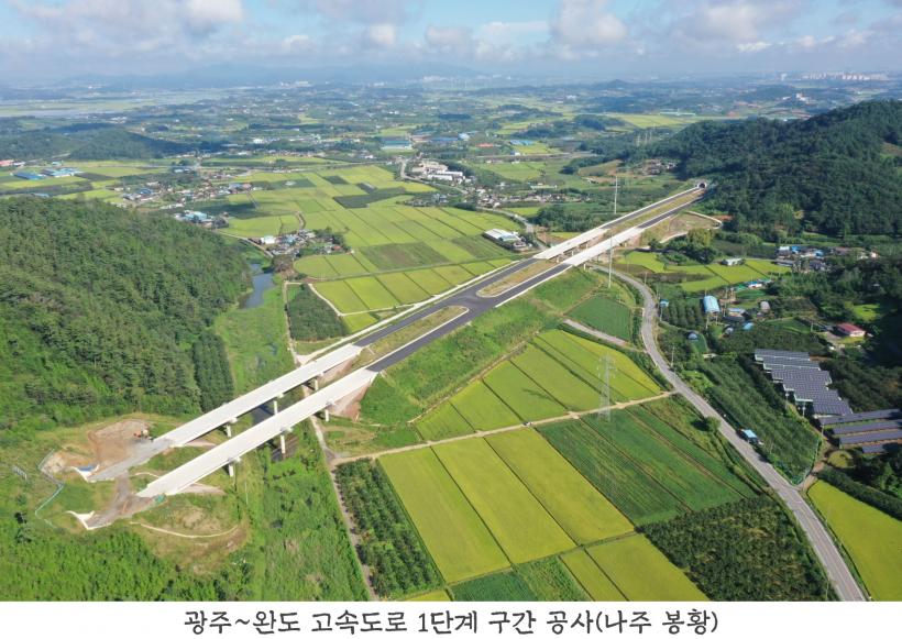 °í¼Óµµ·Î ºÐ¾ß¿¡¼´Â ±¤ÁÖ~¿Ïµµ °í¼Óµµ·Î »ç¾÷ÀÌ º»°Ý ±Ëµµ¿¡ ¿Ã¶ú´Ù. ±¤ÁÖ~°ÁøÀ» ÀÕ´Â 1´Ü°è ±¸°£Àº ÀÜ¿© °ø»çºñ 1õ336¾ï ¿øÀ» Àü¾× È®º¸ÇØ 2026³â 11¿ù °³Åë¿¡ û½ÅÈ£°¡ ÄÑÁ³´Ù. 2´Ü°è ±¸°£ÀÎ °Áø~¿Ïµµ ±¸°£µµ ±âº» ¹× ½Ç½Ã¼³°èºñ 80¾ï ¿øÀ» È®º¸ÇØ 1´Ü°è Áذø ÀÌÀü¿¡ Âø¼öÇÒ ¼ö ÀÖ°Ô µÆ´Ù.