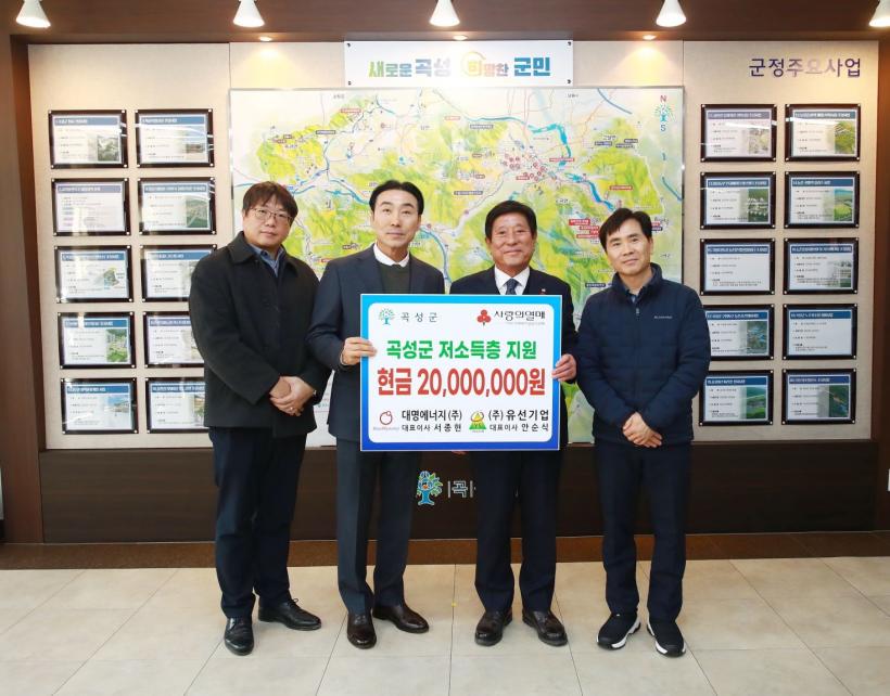 Á¶»ó·¡ °î¼º±º¼ö´Â¡°¿ì¸® Áö¿ªÀÇ ¾î·Á¿î Ãë¾à°èÃþ º¹Áö¸¦ À§ÇØ Áö¼ÓÀûÀ¸·Î Èû½áÁֽô ´ë¸í¿¡³ÊÁö ¼Á¾Çö ´ëÇ¥´Ô°ú À¯¼±±â¾÷ ¾È¼ø½Ä ´ëÇ¥´Ô²² ±íÀº °¨»çÀÇ ¸»¾¸À» ÀüÇÑ´Ù. À̹ø¿¡ ±âºÎÇØ Áֽмº±ÝÀº Àü³²»çȸº¹Áö°øµ¿¸ð±Ýȸ¸¦ ÅëÇØ °î¼º±º Àú¼Òµæ°¡±¸¿¡ ¼ÒÁßÈ÷ Àü´ÞµÉ °ÍÀ̸ç, ÀÌ·¯ÇÑ µû¶æÇÑ ³ª´®ÀÌ Áö¿ª»çȸ¸¦ ´õ¿í µû¶æÇÏ°Ô ¸¸µé °Í¡±À̶ó°í ÀüÇß´Ù.