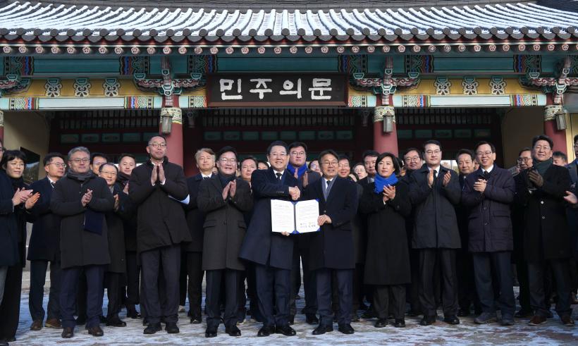 ƯÈ÷ ÀÌÀç¸í Á¤ºÎ¿¡¼ ÅëÇÕ ½Ã¡¤µµ¿¡ ´ëÇØ ¼¿ïƯº°½Ã¿¡ ÁØÇÏ´Â ÁöÀ§¿Í Á¶Á÷Ư·Ê¸¦ ºÎ¿©Çϰí, ±³ºÎ¼¼ Ãß°¡ ¹èºÐ ¹× °ø°ø±â°ü ¿ì¼± ÀÌÀü µî °ú°¨ÇÑ Àμ¾Æ¼ºê¸¦ °èȹÇϰí ÀÖ¾î, Áö±ÝÀ̾߸»·Î ±¤ÁÖ¡¤Àü³²ÀÌ ´ëÅëÇÕÀÇ ±æ·Î ³ª¾Æ°¥ ÀýÈ£ÀÇ ±âȸ¶ó°í º¸°í, À̹ø °øµ¿ ¼±¾ðÀ» ÅëÇØ ÅëÇÕÀ» Áï°¢ ÃßÁøÇϱâ·Î ÇÕÀÇÇß´Ù.