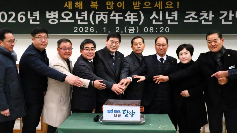 Á¶Âù °£´ãȸ ÈÄ¿¡´Â ±ºÃ» ¸é¾ÓÁ¤½Ç·Î ÀÚ¸®¸¦ ¿Å°Ü Àü Á÷¿øÀÌ Âü¼®ÇÑ °¡¿îµ¥ 2026³â ½Ã¹«½ÄÀ» °³ÃÖÇß´Ù. ½Ã¹«½ÄÀº ½ÄÀü °ø¿¬À» ½ÃÀÛÀ¸·Î ½Å³â ÇÕµ¿ÇÏ·Ê, û·Å ½Çõ °áÀÇ, Á¤Ã¶¿ø ±º¼öÀÇ ½Å³â»ç ¼øÀ¸·Î ÁøÇàµÆ´Ù.