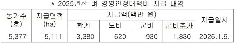 [°ø°£´º½º = ±è¼ö±Ù±âÀÚ] ¿µ±¤±ºÀº 2025³â»ê º °æ¿µ¾ÈÁ¤´ëÃ¥ºñ ÃÑ 33.8¾ï ¿øÀ¸·Î(µµ․±ººñ ¸ÅĪ 15.5¾ï+ ±ººñ Ãß°¡ 18.3¾ï) Àü³²µµ ÃÖ°í ¼öÁØÀÎ ha ´ç 66¸¸ ¿øÀ» ÃÖ´ë 2ha±îÁö º Àç¹è³ó°¡ 5,377³ó°¡¿¡ ¿À´Â 9ÀÏ Áö±ÞÇÑ´Ù°í ¹àÇû´Ù.