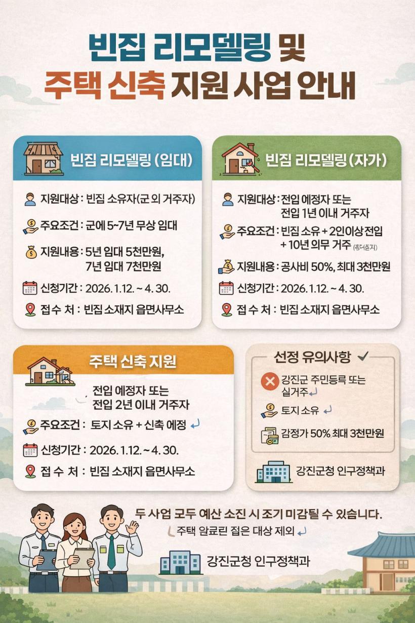 ±ºÀº ¡®2026³â ÁÖÅà ½ÅÃà Áö¿ø»ç¾÷¡¯°ú ¡®»ó¹Ý±â ºóÁý ¸®¸ðµ¨¸µ Áö¿ø»ç¾÷¡¯À» ÅëÇØ ÀüÀÔ ¿¹Á¤ÀÚ¿Í ½Å±Ô ÀüÀÔÀÚÀÇ ÁÖ°Å ¾ÈÁ¤°ú Á¤ÁÖ ±â¹Ý ¸¶·ÃÀ» Áö¿øÇÒ °èȹÀÌ´Ù.
