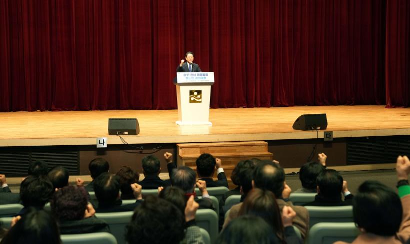 ÀÌ¾î ¡°ÀÌÀç¸í ´ëÅë·É Á¤ºÎÀÇ °·ÂÇÑ Áö¿ø, Àü³²°ú ±¤ÁÖÀÇ Çϳª µÈ ÀÇÁö, ½Ãµµ¹ÎÀÇ ¿¸ÁÀÌ ¸Â¹°¸° Áö±ÝÀÇ ±âȸ¸¦ ³õÄ¡Áö ¾Ê°í ÇàÁ¤ÅëÇÕÀ» Â÷Áú ¾øÀÌ ÃßÁøÇϰڴ١±°í °Á¶Çß´Ù.