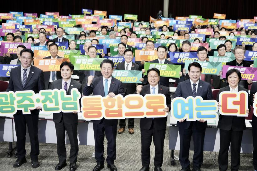 ±¤ÁÖ±¤¿ª½Ã(½ÃÀå °±âÁ¤)¿Í Àü¶ó³²µµ(Áö»ç ±è¿µ·Ï)´Â 16ÀÏ ¿ÀÈÄ 3½Ã ±è´ëÁßÄÁº¥¼Ç¼¾ÅÍ¿¡¼ ¡®±¤ÁÖ‧Àü³² ÇàÁ¤ÅëÇÕ ÃßÁø ¹ü½Ãµµ¹Î ÇùÀÇȸ¡¯ ¹ß´ë½ÄÀ» ¿°í, ´ëÇѹα¹ ÃÖÃÊÀÇ ÅëÇÕ ±¤¿ªÁö¹æÁ¤ºÎ ź»ýÀ» À§ÇÑ ½Ãµµ¹Î ¿ª·® °áÁý¿¡ ³ª¼¹´Ù.