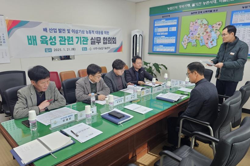 Çü³²¿ ³ªÁֽóó¾÷±â¼ú¼¾ÅÍ ¼ÒÀåÀº ¡°±âÈĺ¯È·Î ÀÎÇÑ ÀÌ»ó±â»óÀº ¹è »ê¾÷ Àü¹Ý¿¡ Å« À§Çù ¿äÀÎÀÌ µÇ°í ÀÖ´Ù¡±¸ç ¡°À̹ø ½Ç¹«ÇùÀÇȸ¸¦ ÅëÇØ ÇöÀå Áß½ÉÀÇ ´ëÀÀ ¹æ¾ÈÀ» ¸¶·ÃÇÏ°í °ü°è ±â°ü°ú ±ä¹ÐÇÑ Çù·ÂÀ» ÅëÇØ ³ªÁÖ¹è »ê¾÷ÀÌ ¾ÈÁ¤ÀûÀ¸·Î ¼ºÀåÇÒ ¼ö ÀÖµµ·Ï Àû±Ø ´ëÀÀÇØ ³ª°¡°Ú´Ù¡±°í ¸»Çß´Ù.