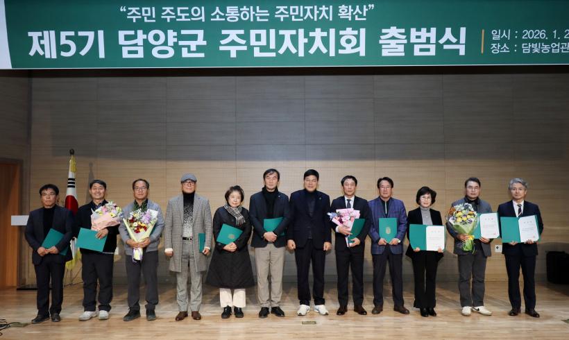 Á¦5±â ´ã¾ç±º ÁÖ¹ÎÀÚġȸ´Â ¡¸´ã¾ç±º ÁÖ¹ÎÀÚÄ¡ Ȱ¼ºÈ Á¶·Ê¡¹¿¡ µû¶ó °ø°³¸ðÁýÀ» ÅëÇØ ¼±¹ßµÈ 12°³ À¾¸é 268¸íÀÇ À§¿øÀ¸·Î ±¸¼ºµÆÀ¸¸ç, ÀÓ±â´Â 2³âÀ¸·Î 2027³â 12¿ù ¸»±îÁö´Ù.