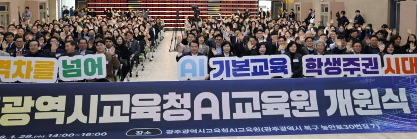 [°ø°£´º½º = ±è¼ö±Ù±âÀÚ] ±¤ÁÖ±¤¿ª½Ã±³À°Ã»AI±³À°¿ø(ÀÌÇÏ ±¤ÁÖAI±³À°¿ø)Àº 28ÀÏ º»¿ø ´ë°´ç¿¡¼ ÀÌÁ¤¼± ±³À°°¨, ½ÃÀÇȸ¡¤´ëÇÐ °ü°èÀÚ, ½Ã¹Î µîÀÌ Âü¼®ÇÑ °¡¿îµ¥ ±¤ÁÖÇü AI±³À°ÀÇ »õ·Î¿î Ãâ¹ßÀ» ¾Ë¸®´Â °³¿ø½ÄÀ» °³ÃÖÇß´Ù.