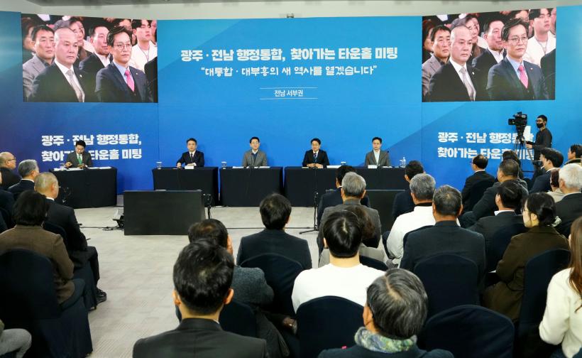 ±¤ÁÖ±¤¿ª½Ã(½ÃÀå °±âÁ¤)¿Í Àü¶ó³²µµ(Áö»ç ±è¿µ·Ï)´Â 4ÀÏ ¿ÀÈÄ ÇØ³²¹®È¿¹¼úȸ°ü ´Ù¸ñÀû½Ç¿¡¼ ¼³²±Ç ½Ã¡¤µµ¹Î 120¿©¸íÀÌ Âü¼®ÇÑ °¡¿îµ¥ ¡®±¤ÁÖ¡¤Àü³² ÇàÁ¤ÅëÇÕ ¼³²±Ç Ÿ¿îȦ¹ÌÆÃ¡¯À» °³ÃÖÇß´Ù.