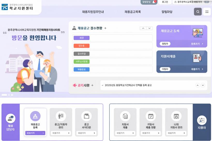 ±¤ÁÖ¼ºÎ±³À°Áö¿øÃ»Àº °¢ Çб³ÀÇ ¡ãä¿ë °ø°í ¡ã¼·ù Á¢¼ö ¹× ½É»ç ¡ãÇÕ°ÝÀÚ ¼·ù Çб³ ÀÌ¼Û µîÀ» Áö¿øÇØ ¿øÈ°ÇÑ Ã¤¿ëÀÌ ÀÌ·ïÁö°í ÀλçÇàÁ¤ÀÇ °øÁ¤¼ºµµ È®º¸ÇÒ °èȹÀÌ´Ù.
