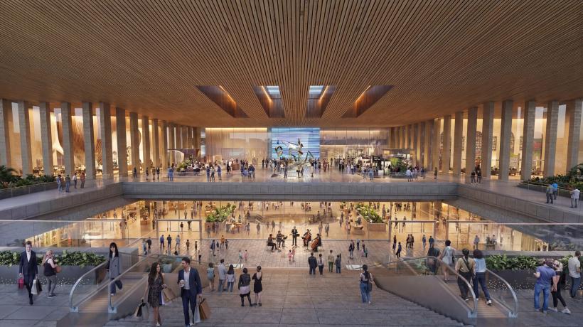 Å͹̳ΠÁöÇÏ 1Ãþ¿¡´Â ¾à 500¿©m ±æÀÌÀÇ º¸Çà ¿¬°á°ø°£ÀÌ Á¶¼ºµÅ ¹éÈÁ¡, Å͹̳Î, ÁÖ°Å¡¤ÀǷᡤ±³À°½Ã¼³À» ÇϳªÀÇ µ¿¼±À¸·Î Àմ´Ù. ½Å¼¼°è´Â ÀÌ °ø°£À» Àü¶óµµÀÇ ¸À°ú ¸ÚÀ» ´ãÀº ¸Ô°Å¸®¡¤¹®È °ø°£À¸·Î ƯÈÇØ »çȸ°ü°è¸Á¼ºñ½º(SNS) ÇÖÇ÷¹À̽º·Î Á¶¼ºÇÒ °èȹÀÌ´Ù.