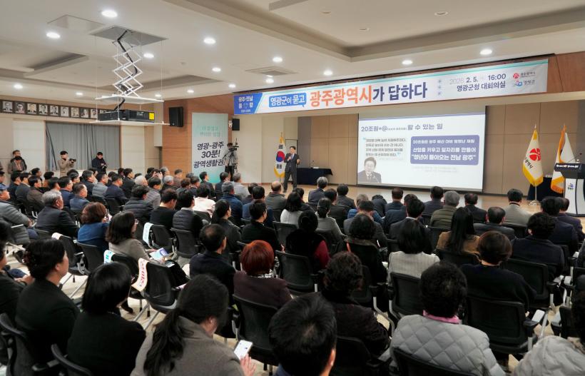 [°ø°£´º½º = ±è¼ö±Ù±âÀÚ] ±¤ÁÖ±¤¿ª½Ã(½ÃÀå °±âÁ¤)´Â 5ÀÏ ¿ÀÈÄ ¿µ±¤±ºÃ» ´ëȸÀǽǿ¡¼ ¡®±¤ÁÖÀü³² ÅëÇÕ ¿µ±¤±º »ó»ýÅäÅ©¡¯¸¦ °³ÃÖÇϰí, ¿µ±¤ÀÇ ¿¡³ÊÁö¡¤±³Å롤»ê¾÷¡¤º¹Áö ºÐ¾ß ÅëÇÕ Àü·«À» °øÀ¯Çß´Ù.