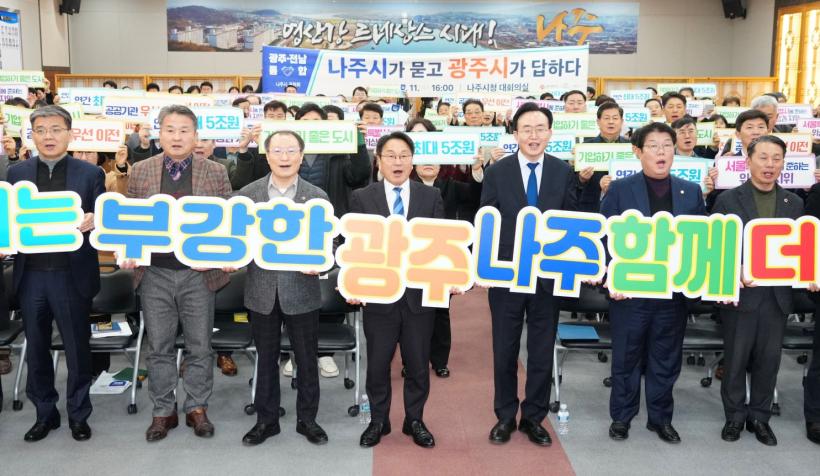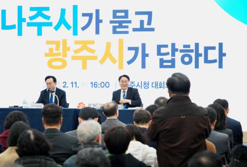 [°ø°£´º½º = ±è¼ö±Ù±âÀÚ] ±¤ÁÖ±¤¿ª½Ã(½ÃÀå °±âÁ¤)´Â 11ÀÏ ¿ÀÈÄ ³ªÁÖ½Ãû ´ëȸÀǽǿ¡¼ ¡®±¤ÁÖÀü³² ÅëÇÕ ³ªÁֽà »ó»ýÅäÅ©¡¯¸¦ °³ÃÖÇϰí, ÅëÇÕÀÇ Çʿ伺°ú ³ªÁֽà ¹ßÀü ¹æ¾È¿¡ ´ëÇØ ³ªÁֽùΰú ¼ÒÅëÇß´Ù.