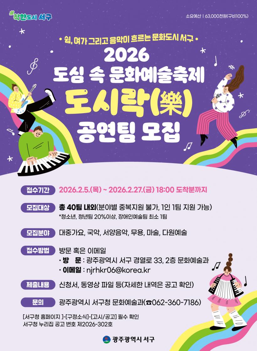 ¼±¸´Â ±¤ÁÖ±¤¿ª½Ã¸¦ Áß½ÉÀ¸·Î Ȱµ¿ÇÏ´Â ¹®È¡¤¿¹¼úÀû ¿ª·®ÀÌ ÀÖ´Â 40°³ °ø¿¬ÆÀÀ» ¸ðÁýÇÑ´Ù. ÀÌÁß Ã»¼Ò³â¡¤Ã»³âÆÀÀ» 20% ÀÌ»ó ¼±Á¤Çϰí Àå¾ÖÀÎ ¿¹¼úÆÀµµ ÃÖ¼Ò 1ÆÀ ÀÌ»ó Æ÷ÇÔÇØ ´Ù¾çÇÑ ÁÖü°¡ Âü¿©ÇÏ´Â Æ÷¿ëÀû ¹®Èȯ°æÀ» Á¶¼ºÇÑ´Ù.