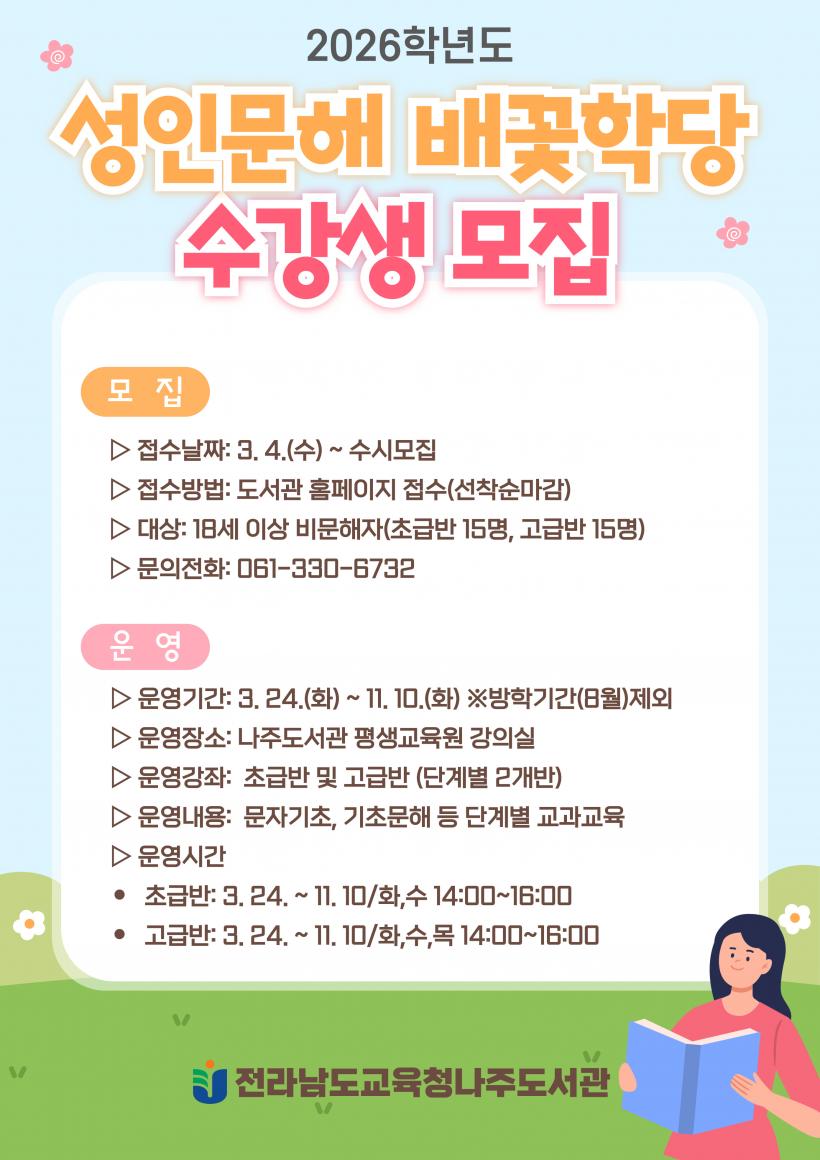 ¼ö° ½ÅûÀº ¿À´Â 3¿ù 4ÀÏ(¼ö)ºÎÅÍ ½ÃÀ۵Ǹç, ±³À° Èñ¸ÁÀÚ´Â Àü¶ó³²µµ±³À°Ã»³ªÁÖµµ¼°ü ȨÆäÀÌÁö¸¦ ÅëÇØ ½ÅûÇÒ ¼ö ÀÖ´Ù