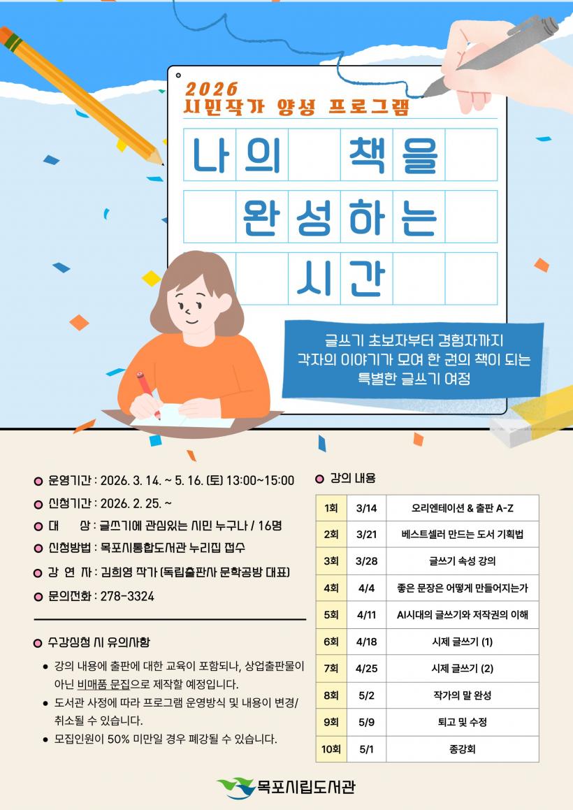 À̹ø °úÁ¤Àº µ¶¼¸¦ ³Ñ¾î ±Û¾²±â¿Í ÃâÆÇ Àü °úÁ¤À» üÇèÇÏ´Â ½Ç½ÀÇü ±³À°À¸·Î ¸¶·ÃµÆ´Ù. Âü¿©ÀÚµéÀº ÃâÆÇ ±¸Á¶ ÀÌÇØ¸¦ ½ÃÀÛÀ¸·Î µµ¼ ±âȹ, ÁÖÁ¦ Ž»ö, ¹®Àå Ç¥Çö ÈÆ·Ã µîÀ» °ÅÃÄ ÀڽŸ¸ÀÇ À̾߱⸦ ¿Ï¼ºÇÏ°Ô µÈ´Ù. °úÁ¤ Áß °³º° Çǵå¹é°ú ÁýÇÊ, Åð°í °úÁ¤À» ÅëÇØ ¿Ï¼ºµµ¸¦ ³ôÀÏ ¿¹Á¤ÀÌ´Ù.