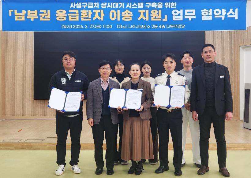 ³ªÁֽú¸°Ç¼Ò´Â Áö³ 2¿ù 27ÀÏ º¸°Ç¼Ò 4Ãþ ´Ù¸ñÀû°´ç¿¡¼ ÀÌâ119¾ÈÀü¼¾ÅÍ, Àü³²EMS¿Í ³²ºÎ±Ç ÀÀ±ÞȯÀÚ ÀÌ¼Û Áö¿ø»ç¾÷ÀÇ ¿øÈ°ÇÑ ÃßÁøÀ» À§ÇÑ ¾÷¹«Çù¾àÀ» ü°áÇß´Ù°í ¹àÇû´Ù.